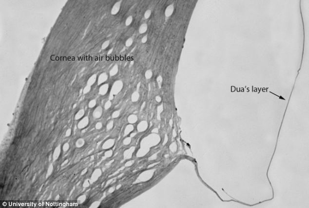Dua and his colleagues discovered the new layer of the cornea by injecting air bubbles into eyes donated for research. The air bubbles were injected to separate various layers of the cornea. This allowed the scientists to scan the layers using an electron microscope in order to study the corneal layers magnified several thousand times larger than their actual size, leading them to find Dua’s layer.
