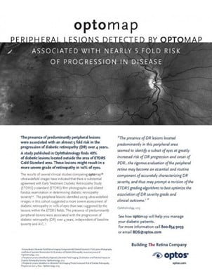 optomap® imaging has been shown to improve management of diabetes in patients. optomap images capture a 200° view (about 82%) of the retina versus the 75° view provided by 7SF images. Studies have shown that this wider view can uncover evidence of disease that’s outside the narrow view of 7SF images. It can even change how doctors judge the severity of disease.