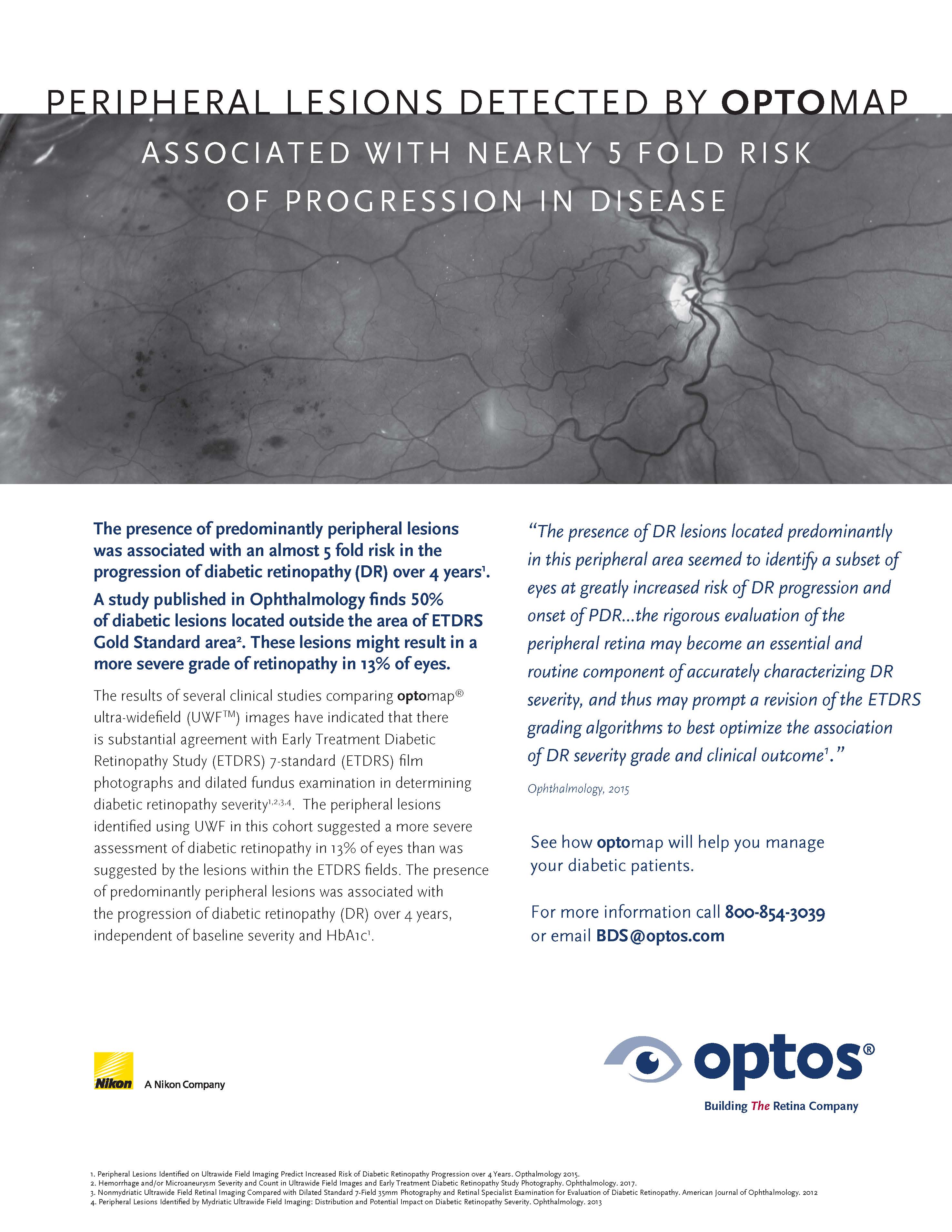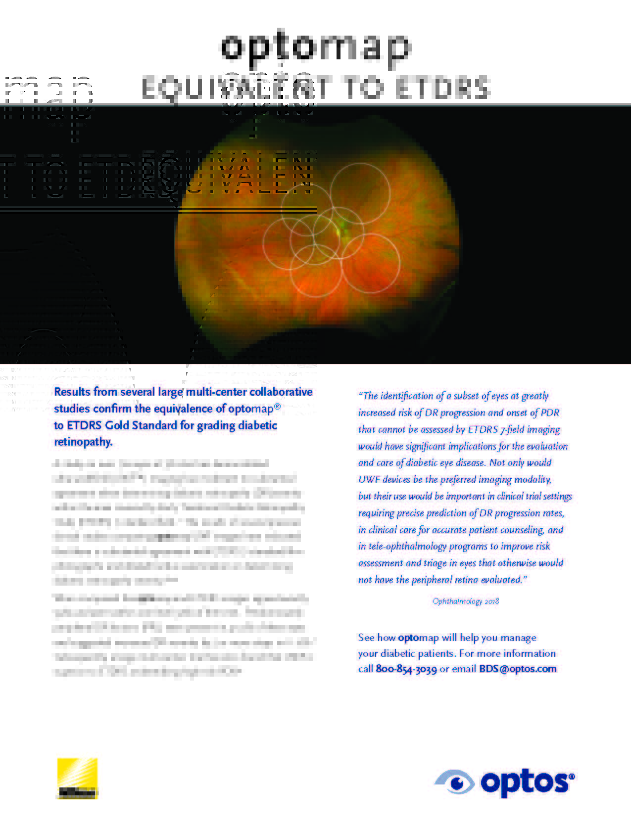 optomap® imaging has been shown to improve management of diabetes in patients. optomap images capture a 200° view (about 82%) of the retina versus the 75° view provided by 7SF images. Studies have shown that this wider view can uncover evidence of disease that’s outside the narrow view of 7SF images. It can even change how doctors judge the severity of disease.