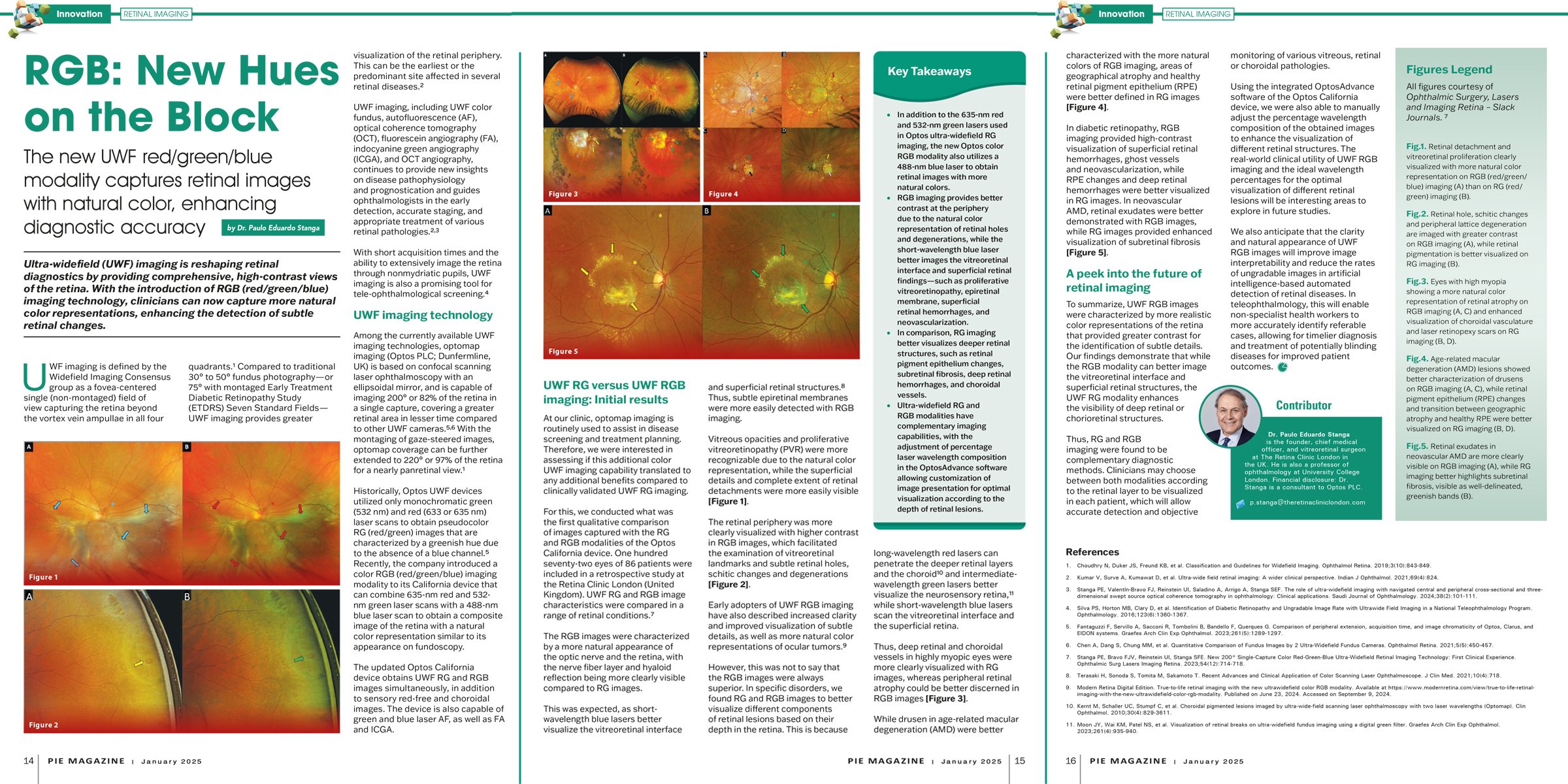In a recent article published in PIE magazine by Media MICE, renowned ophthalmologist Professor Paulo Eduardo Stanga, MD, shared his insights on how optomap color rgb maging improves diagnostic accuracy by providing a more natural color representation and enhanced visualization of both superficial and deep retinal structures.