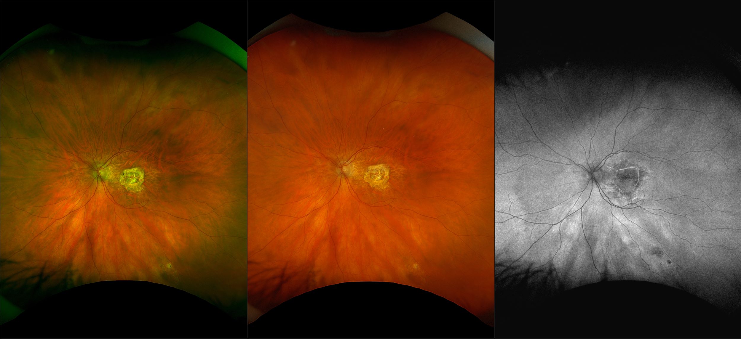 Age-related macular degeneration is found in two forms 1. Dry early form. 2. Wet (serous leakage or whole blood). Early dry form typically has drusen (usually around 63u) and RPE degeneration and only needs periodic follow-ups, intermediate dry form has large drusen (>125u) and RPE degeneration and proliferation which requires examinations every 3 to 6 months depending on the severity of the presentation.