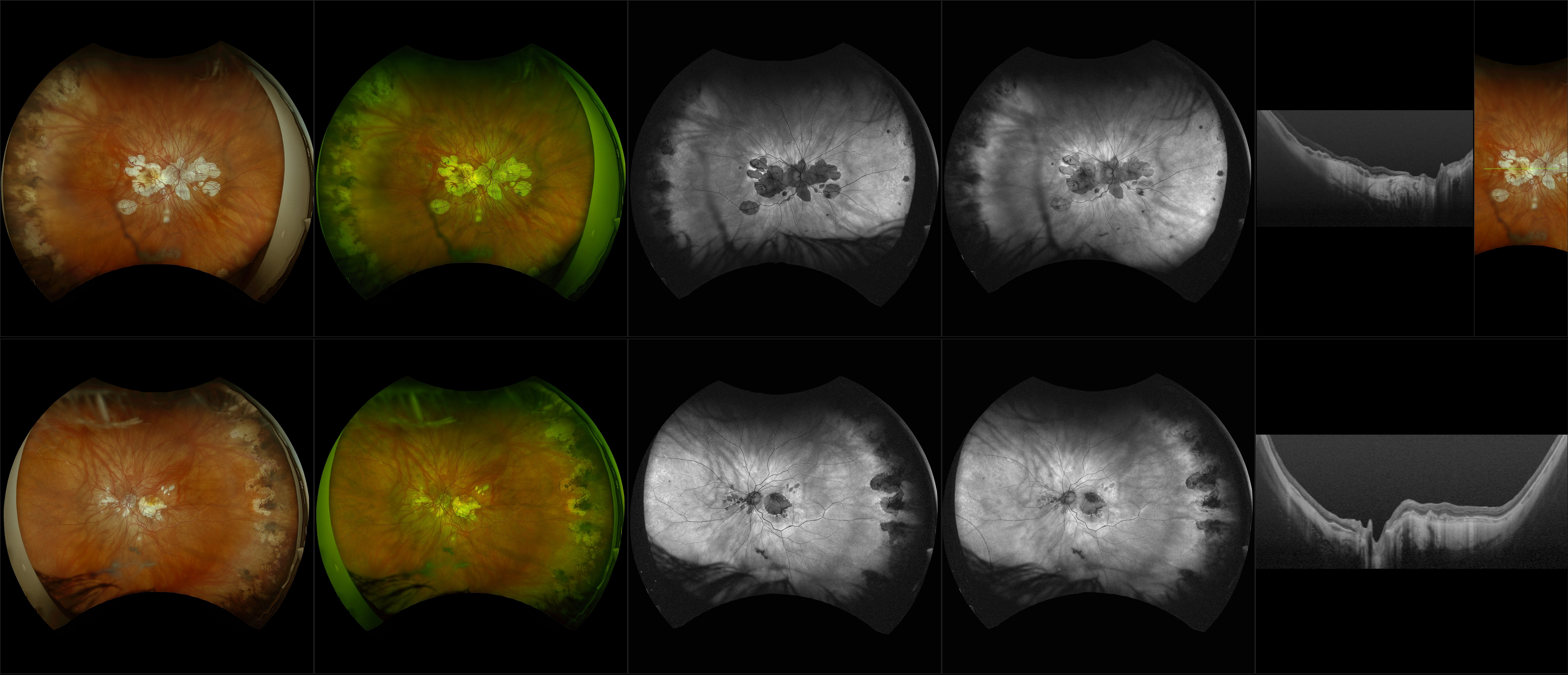 Silverstone - Degenerative Myopia with Macular Neovacsularization (OU) - RG, RGB, AF, BAF, OCT - Line, UWF Line, Raster, Retina, ONH, Navigated Volume