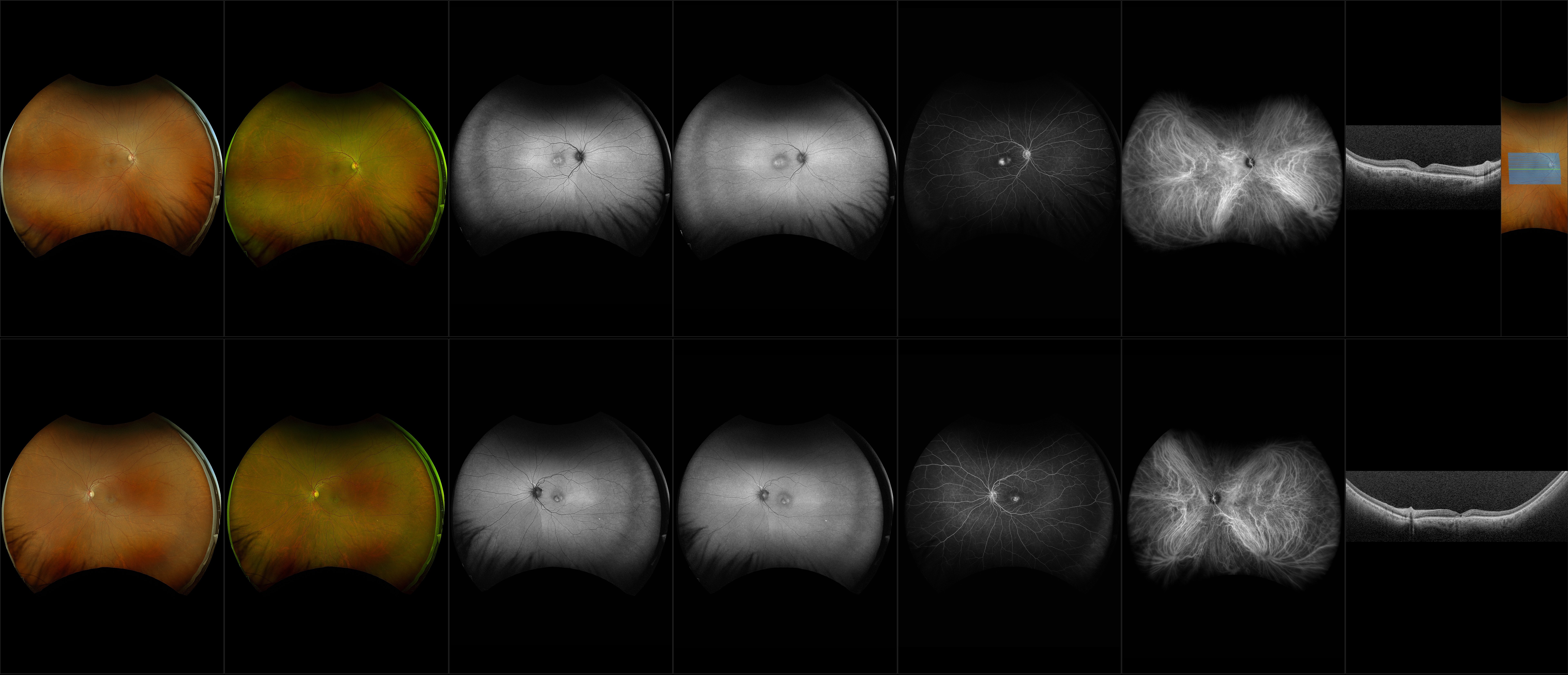 Silverstone - Macular Telangiectasia with Macular Neovascularization (OU), Peripheral Hemorrhage (OD) - RG, RGB, AF, BAF, FA, ICG, OCT - Line, UWF Line, Raster, Retina