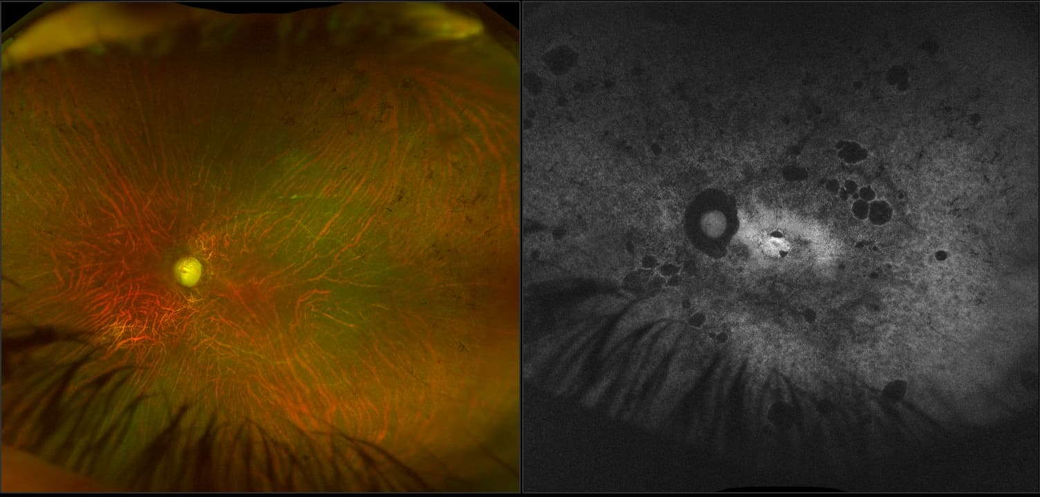 In the picture: One study found that 59% of uveitis cases had peripheral findings on optomap icg. Another study found that adding UWF imaging changed treatment in uveitis patients up to 48% of the time.